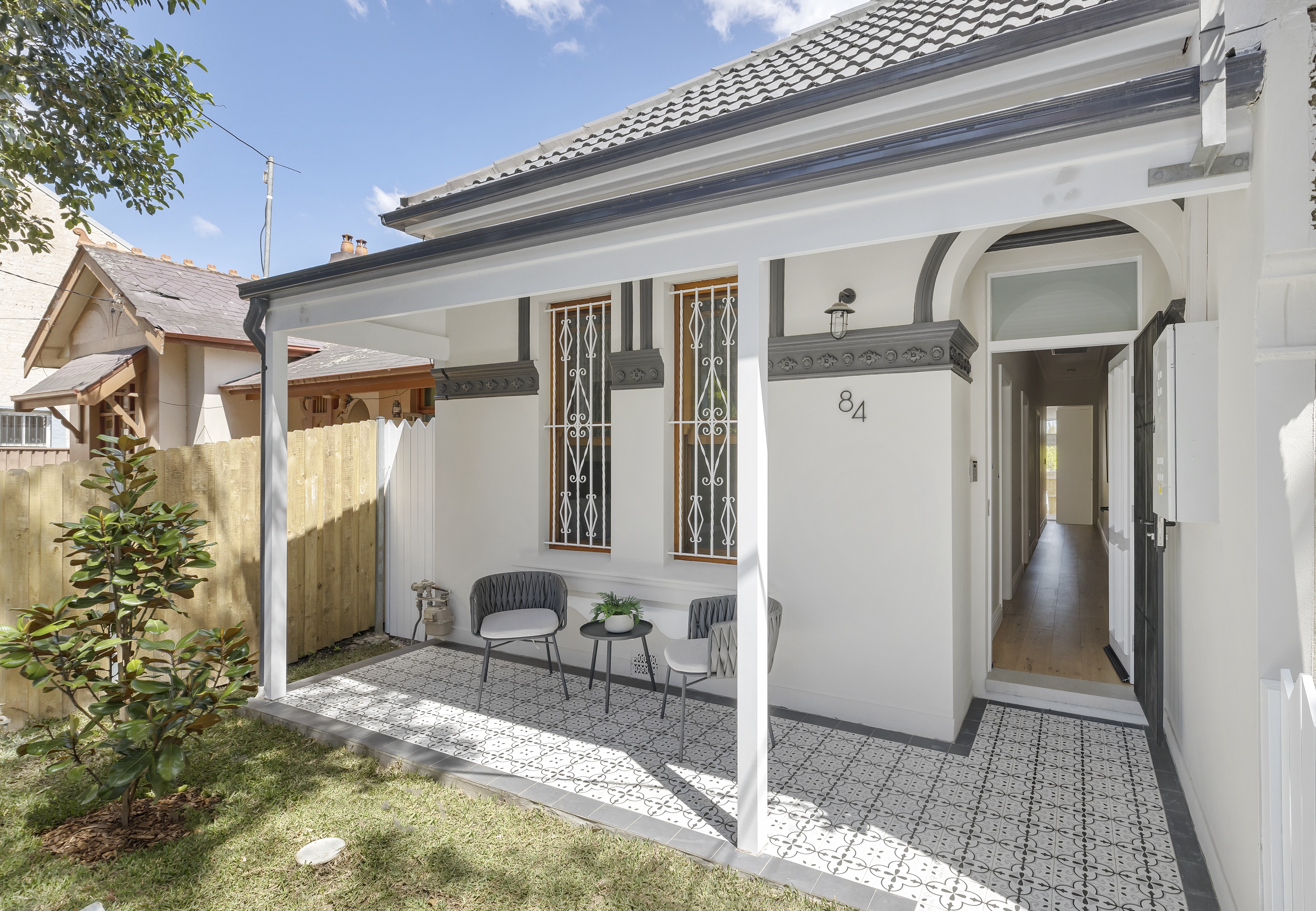 Highlights * Well-equipped modern kitchen with Zip tap * Gas fireplace heats entire home, ducted AC * Opens to deck & outdoor entertaining area * Sky-lit internals & soaring high ceilings * Generous beds with built-ins, modern bath * Front garden, side access to the courtyard * Large attic, integrated storage & laundry * Cafe hubs all around, near King St Newtown * Walk to Sydenham train, Marrickville Metro * Engineered timber/polished concrete floors